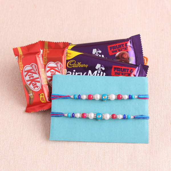 Raksha Bandhan is the festival which cherishes the bonding between a brother and a sister. Deciding a perfect Rakhi for your brother is a difficult task but, is also a fun moment. On this Raksha Bandhan give your two brothers a set of unique Rakhis that will look super cool on them. This gift hamper is the combo of two pieces of designer Rakhis with some chocolates. Give a Rakhi treat to your brothers and make this Raksha Bandhan a fun to celebrate.