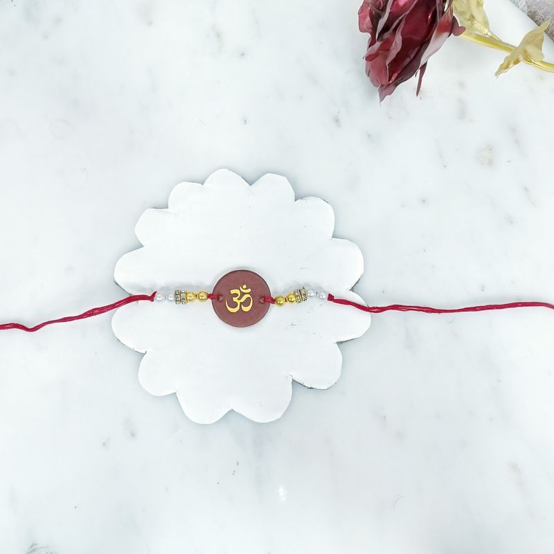 Discover our Artisan Resin Om Rakhi, meticulously crafted from high-quality resin for a unique blend of traditional charm and contemporary style. Perfect for celebrating Raksha Bandhan with a symbol of divine protection and love.
