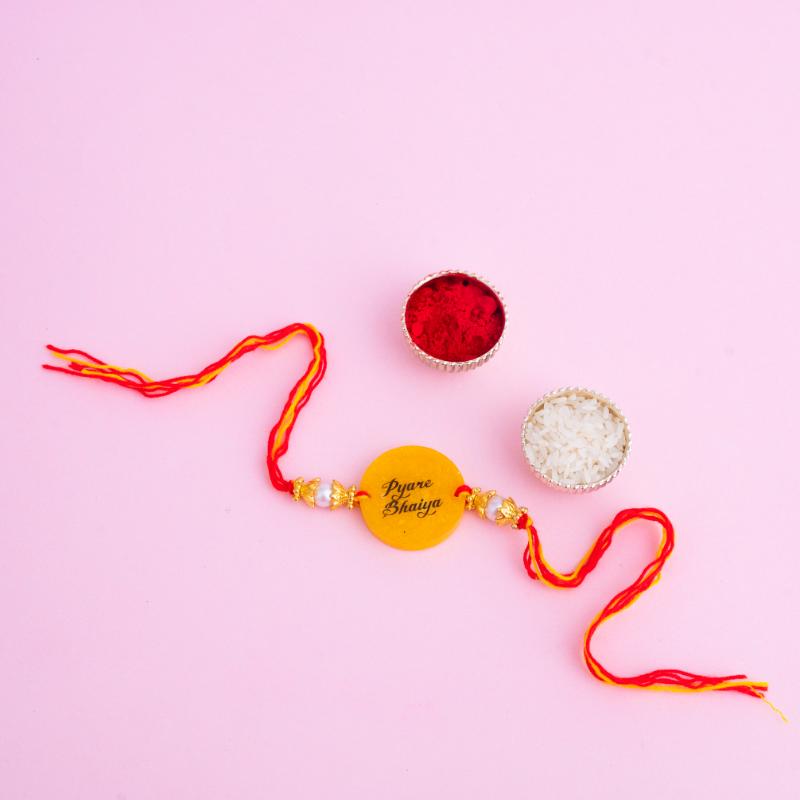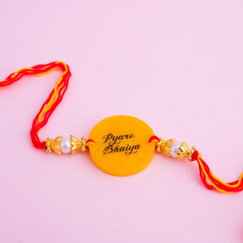 Brighten your Raksha Bandhan celebrations with the Dear Brother Yellow Resin Rakhi. Featuring a bold yellow centerpiece and stylish "Dear Brother" lettering, this resin rakhi blends modern flair with heartfelt emotion—perfect for expressing love across distances.