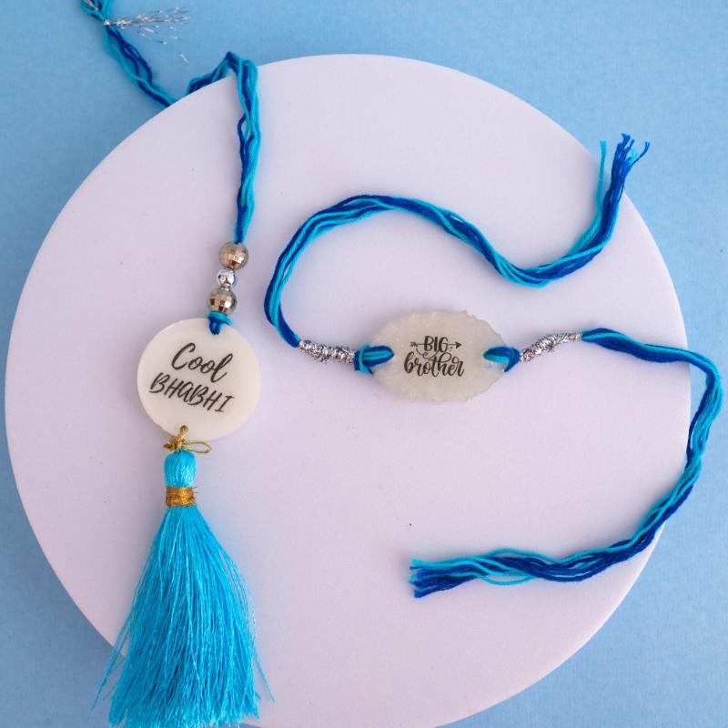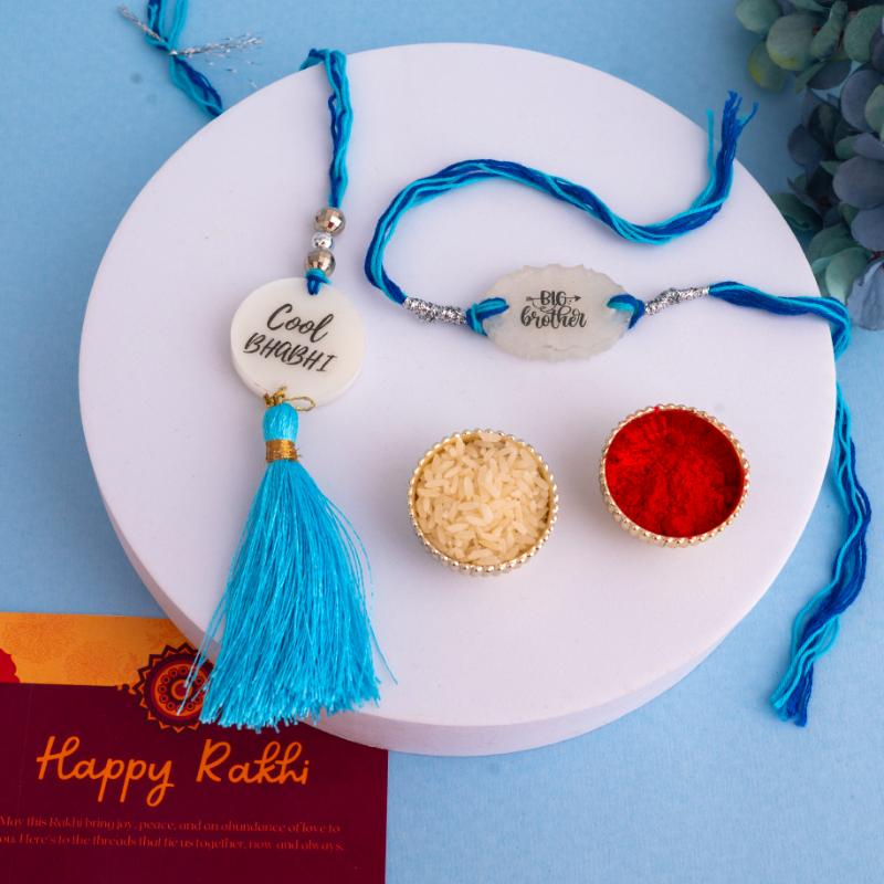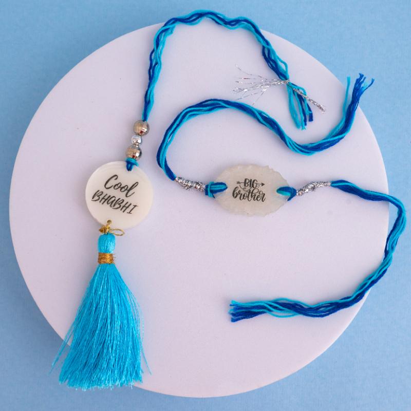 Celebrate the unbeatable bond with your fun-loving Bhaiya and stylish Bhabhi through our Big Bro & Cool Bhabhi Resin Rakhi Set. The rakhi for Bhaiya features a striking “Big Brother” design, while the lumba for Bhabhi reflects her cool, modern vibe with playful details. Together, they make a trendy yet heartfelt gift for Raksha Bandhan. Send this quirky set across miles to bring smiles home this festive season.