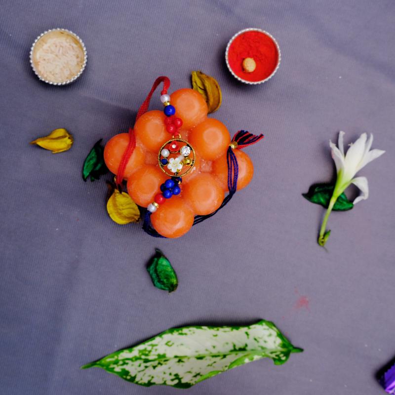 Celebrate your blooming bond with our Blooming Bond Bunch of Flowers Rakhi. Designed with a charming cluster of tiny floral motifs, this rakhi reflects joy, affection, and heartfelt connection. The soft colors and handcrafted detail give it a refreshing and elegant look—perfect for a brother who brings color to your life. Tie this floral delight around his wrist and let it speak of love that blossoms endlessly, just like your sibling relationship.