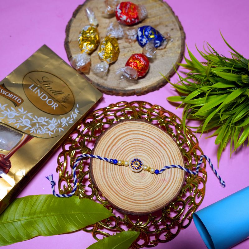 Celebrate Raksha Bandhan with our Blossom Bliss Rakhi, adorned with vibrant florals and paired with luxurious Lindt Lindor chocolates. Perfect for expressing your love and affection, this exquisite combination is sure to delight your sibling on this special occasion.
