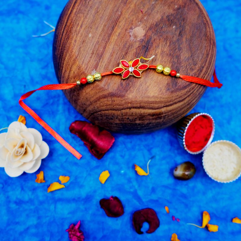 Embrace the beauty of tradition with our Blossom Stone Rakhi, a perfect blend of elegance and charm. Adorned with intricate floral designs and a shimmering stone centerpiece, this rakhi is a timeless symbol of love and sibling bond.