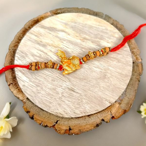 This enchanting Krishna Rakhi beautifully captures the essence of love, protection, and the timeless bond between siblings. Inspired by the divine persona of Lord Krishna, this rakhi features intricate designs that reflect his playful spirit and serene grace. Adorned with vibrant colors and detailed embellishments, it symbolizes not just a protective charm but also the blessings of wisdom and joy that Krishna embodies. The centerpiece often showcases Krishna''s playful demeanor, drawing upon traditional motifs that highlight his role as a beloved figure in Indian mythology. Tied with love, this rakhi serves as a heartfelt reminder of the sacred bond shared between brothers and sisters, promising loyalty and support. As siblings exchange this beautiful token, it weaves a narrative of cherished memories and promises of protection, resonating with the warmth of familial love. Celebrate your sibling bond this Raksha Bandhan with a piece that embodies devotion, joy, and the divine spirit of Krishna.