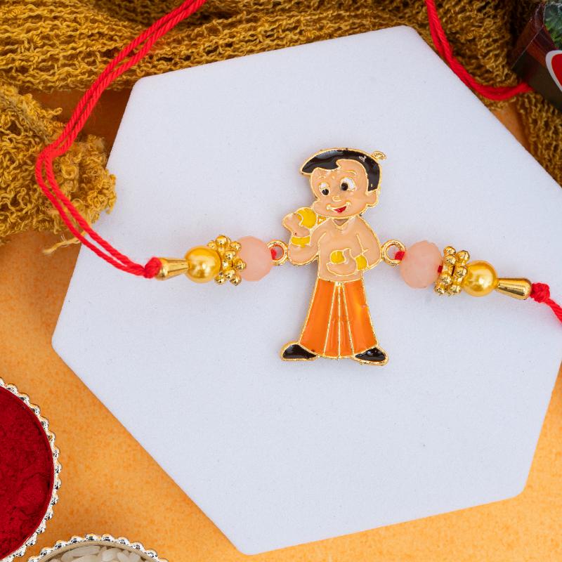 Celebrate Raksha Bandhan with strength, mischief, and loads of fun with our Chota Bheem Rakhi! Perfect for your energetic and adventure-loving little brother, this rakhi features the beloved cartoon hero in a bright, kid-friendly design. Made with soft, skin-safe materials, it’s a playful and affectionate way to show your love to the bravest “chhota” hero in your life—whether you’re close by or sending it across the miles.