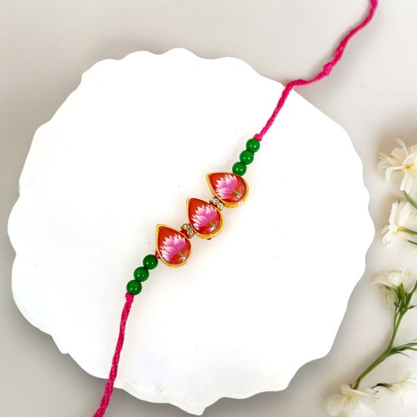 The Red Stone Rakhi is a mesmerizing blend of tradition and elegance, embodying the essence of sibling love and protection. Crafted with vibrant red stones, this rakhi symbolizes strength, passion, and auspiciousness, making it an ideal choice for the celebration of Raksha Bandhan. Each intricate pattern is meticulously designed to reflect the rich cultural heritage, while the shimmering stones capture light, creating a stunning visual appeal. This rakhi is paired with exquisite thread, emphasizing durability and beauty, ensuring it remains a cherished keepsake. Beyond its beauty, the Red Stone Rakhi represents an unbreakable bond, serving as a daily reminder of the commitment to safeguard and cherish one''s sibling. Perfect for siblings who share a deep emotional connection, this rakhi encapsulates the warmth of love, making it a significant and heartfelt gesture that transcends distance and time. Celebrate this special occasion with a rakhi that tells a beautiful story of loyalty and affection.