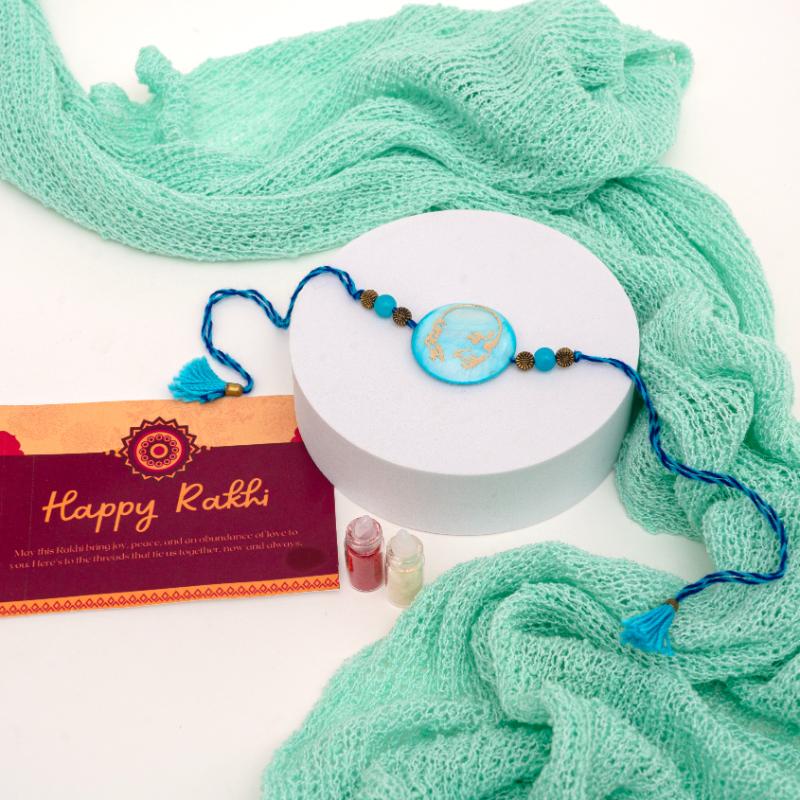 Celebrate Raksha Bandhan with divine protection through the Blessings of Babaji Spiritual Rakhi. Featuring a serene image of Babaji on a beautifully crafted centerpiece, this rakhi is a token of spiritual guidance and love. It’s the perfect way to bless your brother with strength, peace, and sacred connection—wherever he may be.