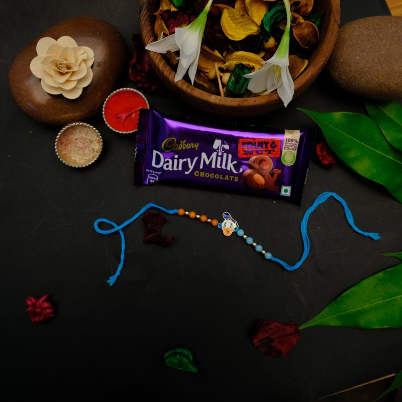 Make Raksha Bandhan fun and flavorful with this Donald Duck Rakhi with Dairy Milk Bar combo! Featuring the ever-cheeky Disney icon, this rakhi adds a splash of cartoon charm to your celebration. Paired with a smooth 100g Dairy Milk chocolate bar, it’s the perfect gift for your little mischief-maker. Whether tying it at home or sending rakhi to the USA, this combo guarantees smiles and sweetness.
