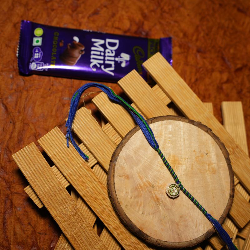 Experience the joyous bond of Raksha Bandhan with our Enchanting Bliss Rakhi adorned with Dairy Milk chocolates. This beautifully crafted Rakhi symbolizes love and sweetness, perfect for celebrating with your beloved sibling. The Dairy Milk chocolates add a delicious touch to the festivities, making it a memorable occasion for both of you.