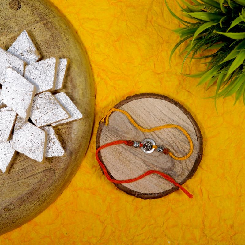 Infuse blessings and sweetness into your Raksha Bandhan celebration with this Ganesha Oxidised Metal Rakhi with Kaju Katli 340gms. The rakhi features a finely crafted oxidised metal charm of Lord Ganesha, symbolizing wisdom, protection, and prosperity. Its rustic design adds a traditional yet artistic flair. Paired with 200gms of premium Kaju Katli, this combo is perfect for sending love, good wishes, and festive warmth to your brother—whether you’re tying it at home or delivering it to the Australia.