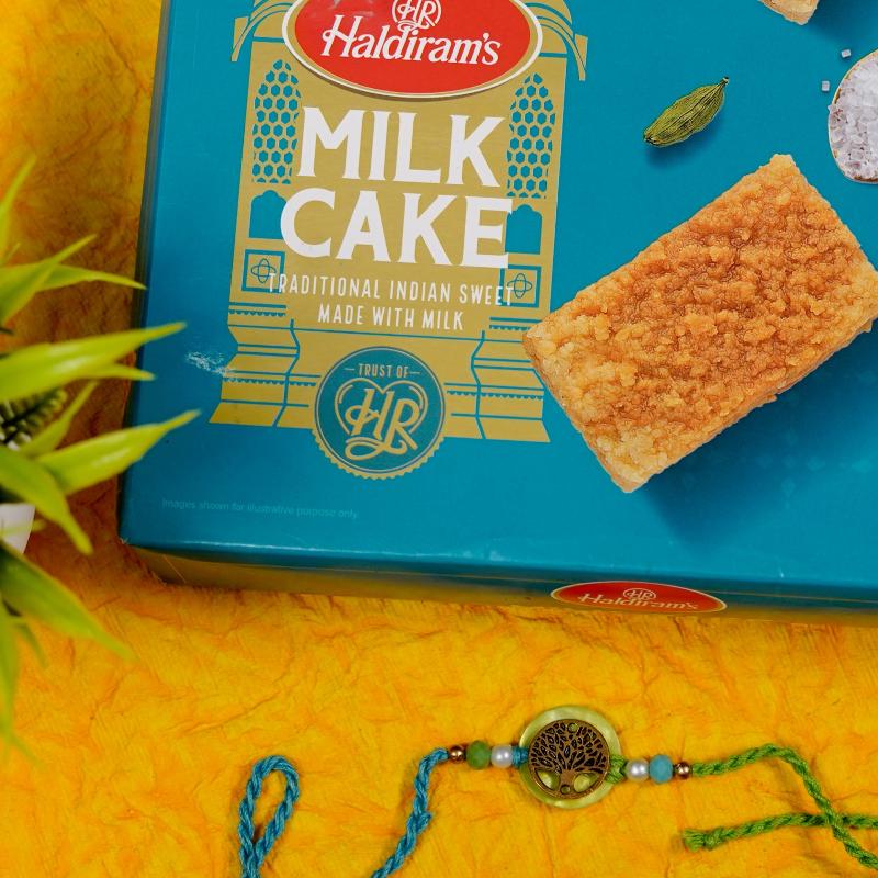 Gift your brother blessings of growth and prosperity this Raksha Bandhan with our Green Wishing Tree Rakhi with Milk Cake 200gm. Designed with the symbolic Tree of Life motif in vibrant green, this rakhi represents positivity, protection, and deep-rooted love. Paired with 340gms of rich, caramelized Milk Cake, this combo brings tradition and emotion together. A perfect gift to send across borders—especially to the Australia—to express love, prayers, and the sweetness of sibling bonding.