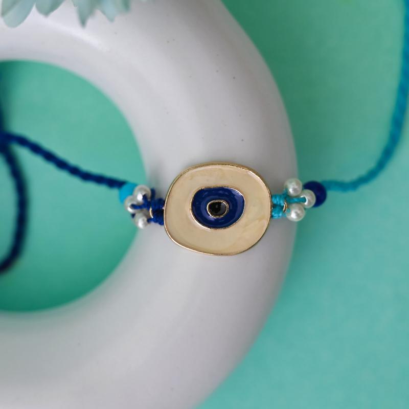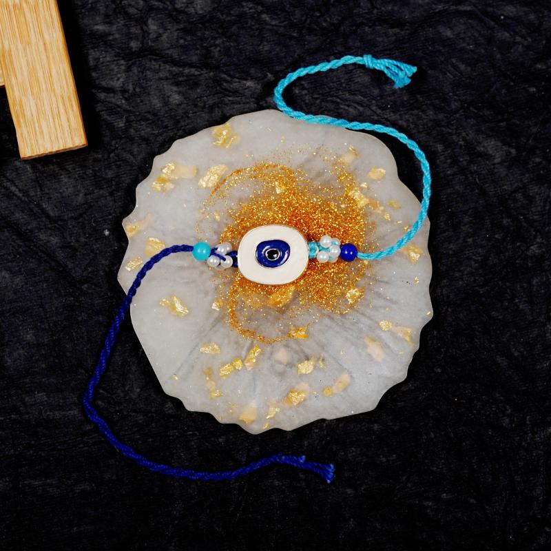 Gift your brother a token of protection and love with the Divine Shield Evil Eye Rakhi. Featuring the classic evil eye charm believed to ward off negativity, this rakhi is both stylish and meaningful. Crafted for brothers who appreciate modern traditions, it brings together symbolism and sibling love—no matter the miles between.
