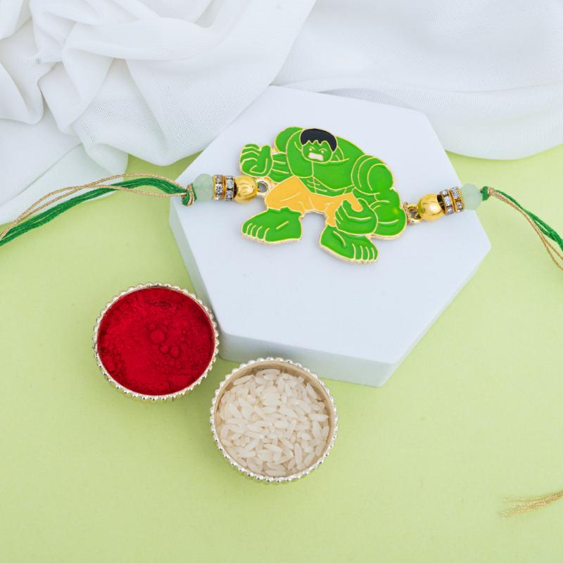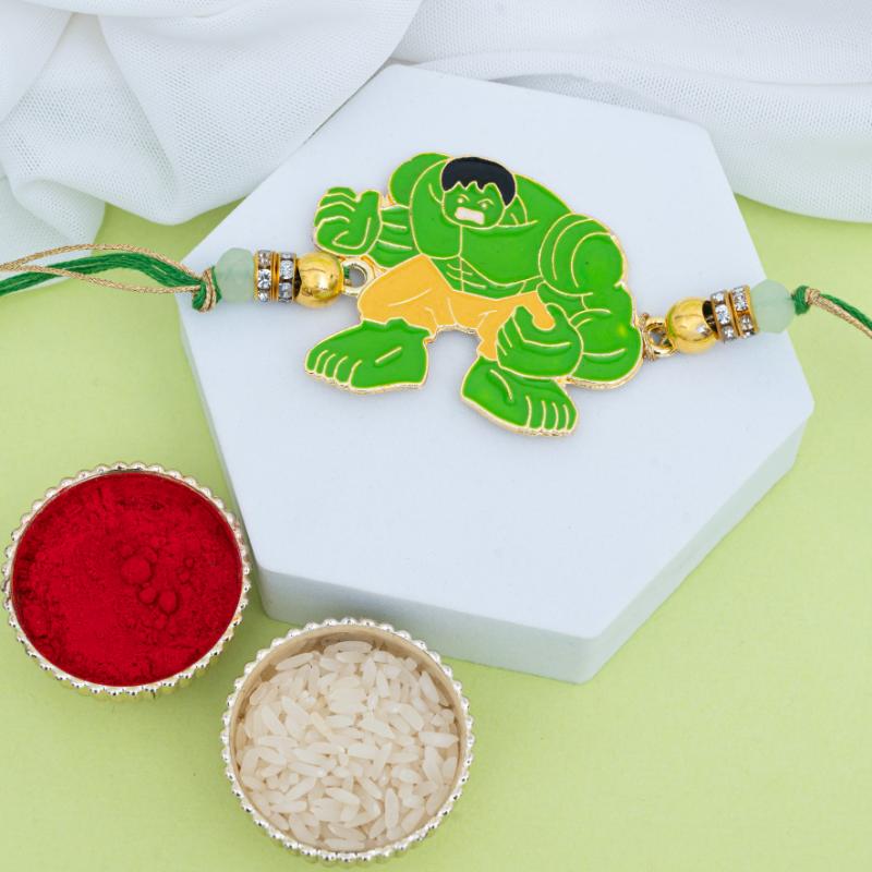 Smash the distance this Raksha Bandhan with the Incredible Hulk Rakhi! Perfect for your little superhero or Marvel-obsessed brother, this rakhi features the mighty Hulk in a bold, kid-friendly design. Made with soft, skin-safe materials, it’s as strong in sentiment as it is in style. A fun and powerful way to celebrate the unbreakable bond between you and your “strongest” sibling.
