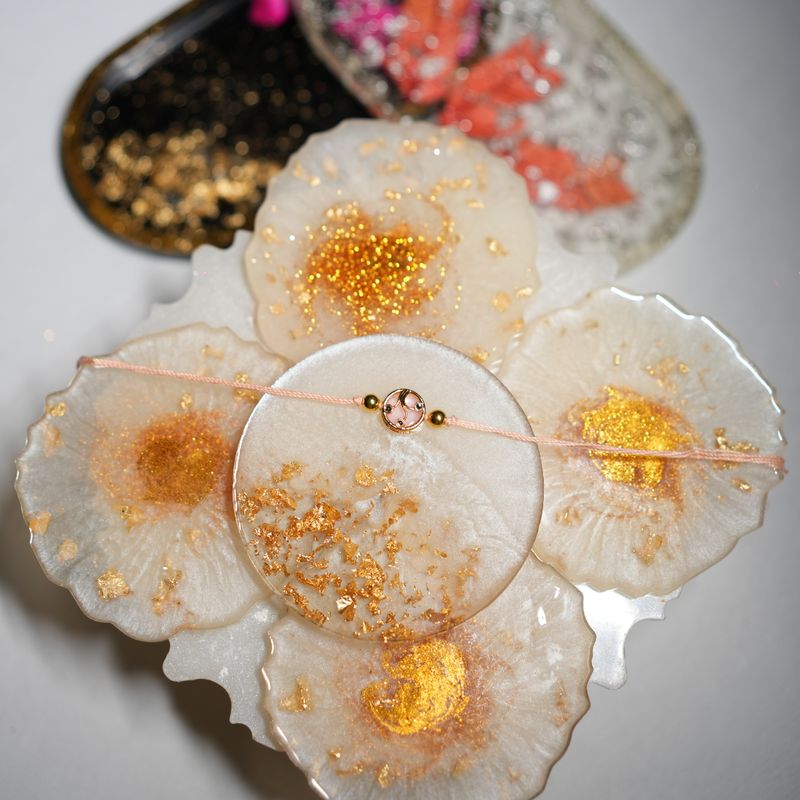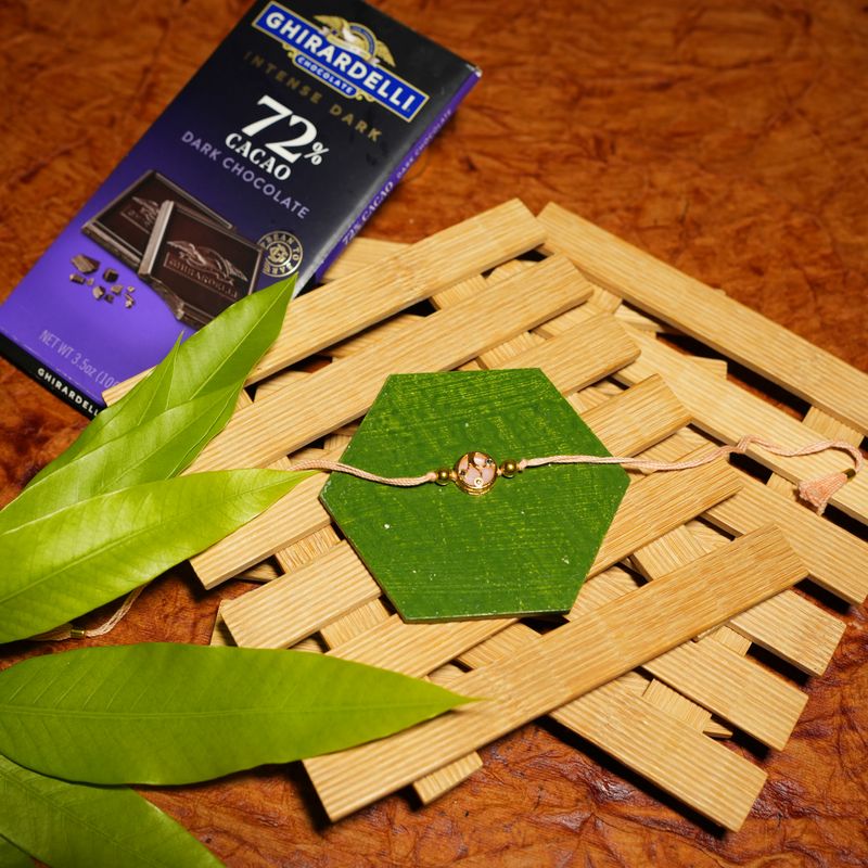 Embrace the elegance of our Luxe Stone Rakhi with Ghirardelli chocolates, perfect for celebrating the bond of love and tradition this Raksha Bandhan.