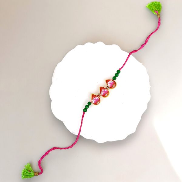 Embrace the spirit of brotherhood this Raksha Bandhan with our exquisite Maroon Drops Rakhi, a masterpiece that seamlessly blends tradition with contemporary elegance. Crafted with meticulous attention to detail, this rakhi features a vibrant maroon thread, symbolizing love and warmth, adorned with delicately crafted drop motifs that glisten with charm. Each drop is intricately designed, reflecting the strength of your bond and the joy of shared memories. The rich hue of maroon resonates with auspiciousness and protection, making it a perfect choice to celebrate the unbreakable sibling connection. This rakhi is bound to evoke fond feelings and serve as a constant reminder of your promises to each other. Celebrate the festival with a touch of luxury and artistry, and let this Maroon Drops Rakhi become a cherished symbol of your enduring relationship, transcending time and distance, uniting hearts in love and loyalty.