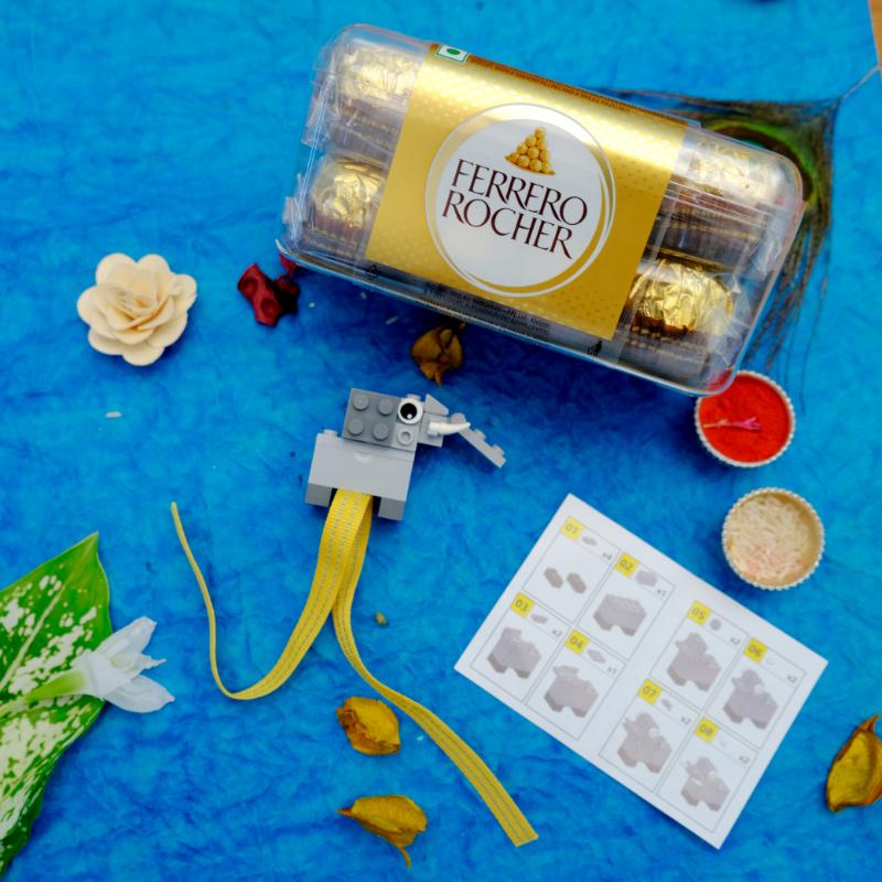 Make Raksha Bandhan bright and indulgent with this Lego Rakhi with Ferrero Rocher 12pcs combo. Perfect for your little builder, this rakhi features a fun, block-themed design and comes with 12 luxurious Ferrero Rocher chocolates. Whether near or sending rakhi to the USA, this playful and delicious combo adds color, creativity, and sweetness to your sibling celebration.