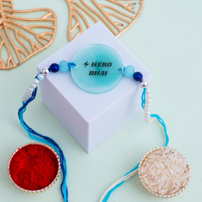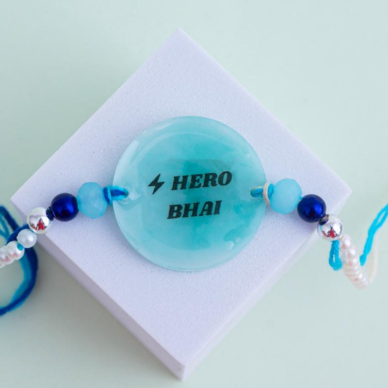 Celebrate your brother—the real-life superhero in your life—with the My Hero Bhai Resin Rakhi Charm. Designed with bold lettering and a sturdy resin base, this rakhi brings out the fearless and loving spirit of your brother. The vibrant threads and durable finish make it a keepsake he''ll cherish long after the festival ends. Let this rakhi be your heartfelt salute to the brother who’s stood by you through thick and thin.
