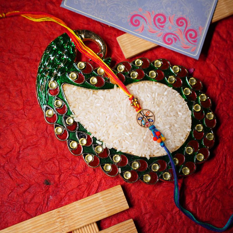 Embrace protection with our Mystic Gaze Designer Evil Eye Rakhi, meticulously crafted to ward off negative energies. Perfect for celebrating the bond of love and safety.