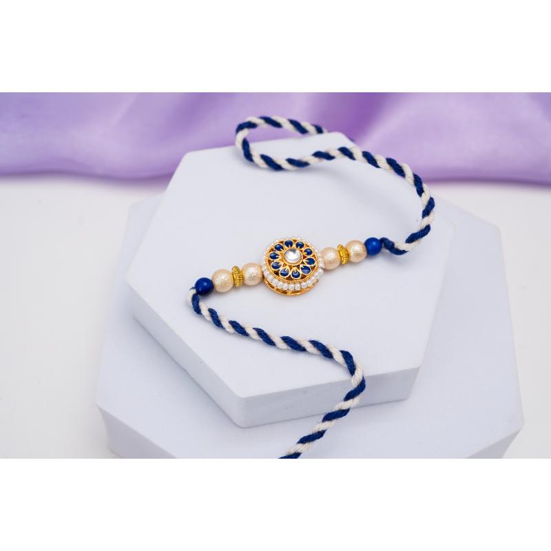 Adorn your brother''s wrist with our Oceanic Charm Rakhi, a truly unique piece featuring a striking deep blue centerpiece stone. This beautiful rakhi embodies tranquility, depth, and unwavering loyalty—much like the bond you share. The vibrant blue hue, reminiscent of vast oceans, symbolizes calm and protection, making it a distinctive and meaningful token of your affection. This elegant rakhi comes paired with a generous 1kg of juicy, spongy Rasgullas, a beloved Indian sweet that promises to add an extra layer of sweetness to your Raksha Bandhan celebrations. It''s the perfect blend of unique design and traditional indulgence.