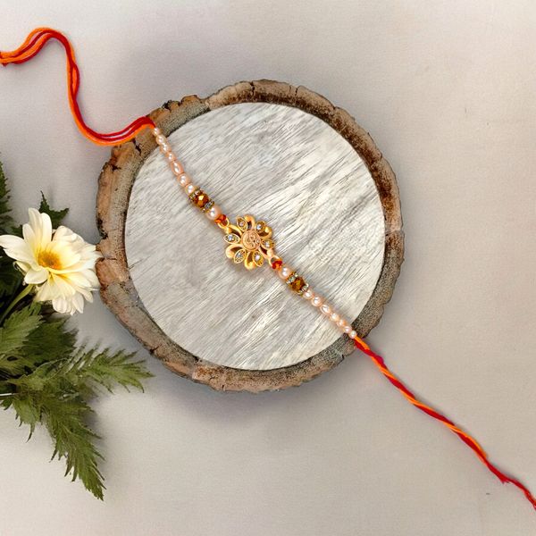 The golden rakhi, a symbol of divine bonds and timeless traditions, transcends mere adornment, embodying the essence of love and protection shared between siblings. Crafted with meticulous artistry, this exquisite rakhi features intricate designs infused with shimmering gold hues, making it a glowing emblem of affection. The blend of traditional motifs and contemporary elegance creates a stunning visual appeal, representing the harmonious union of heritage and modernity. Whether embellished with precious stones or delicate filigree, each golden rakhi tells a story of devotion and commitment. As the sacred thread is tied on the wrist, it becomes a tangible representation of promises made—of safeguarding one another through life’s trials and tribulations. Beyond its aesthetic allure, the golden rakhi serves as a heartfelt reminder of the unbreakable bond of brotherhood and sisterhood, making it an ideal gift that radiates warmth, joy, and everlasting memories on the auspicious occasion of Raksha Bandhan.