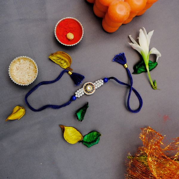 Celebrate Raksha Bandhan with our Radiant Moti Divine Rakhi, a symbol of love and protection. Adorned with pearls and intricate craftsmanship, this rakhi is a perfect blend of tradition and elegance.