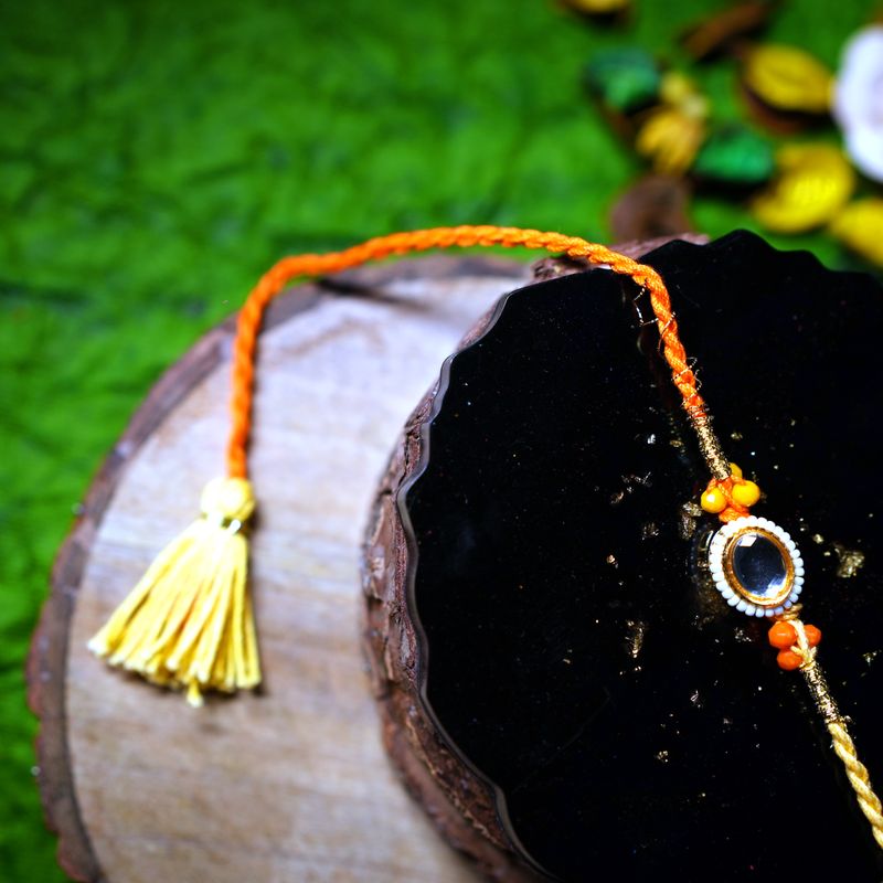 Celebrate Raksha Bandhan with the exquisite Regal Kundan Rakhi, a symbol of timeless elegance and tradition. Adorned with intricate Kundan work, this rakhi blends cultural heritage with contemporary craftsmanship. Perfect for expressing love and respect, it comes with a heartfelt promise of protection and joy.