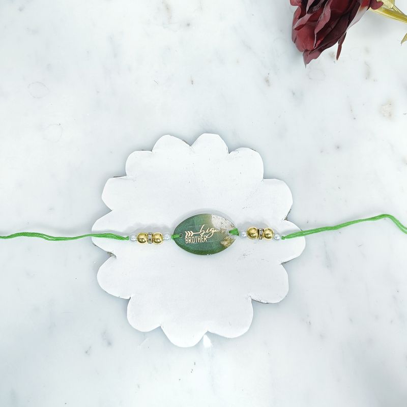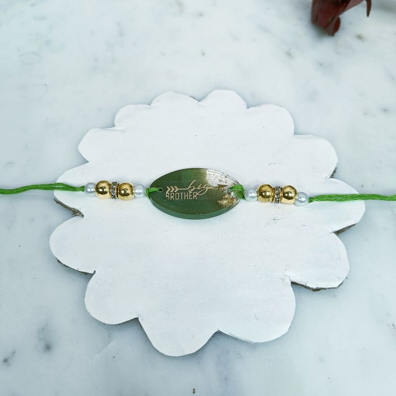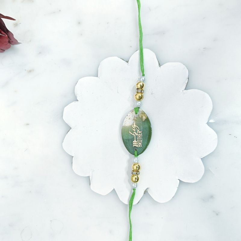 Our Resin Elegance Big Brother Rakhi combines modern aesthetics with heartfelt tradition. Crafted from high-quality resin, this rakhi is a symbol of strength and sibling love, perfect for celebrating Raksha Bandhan.