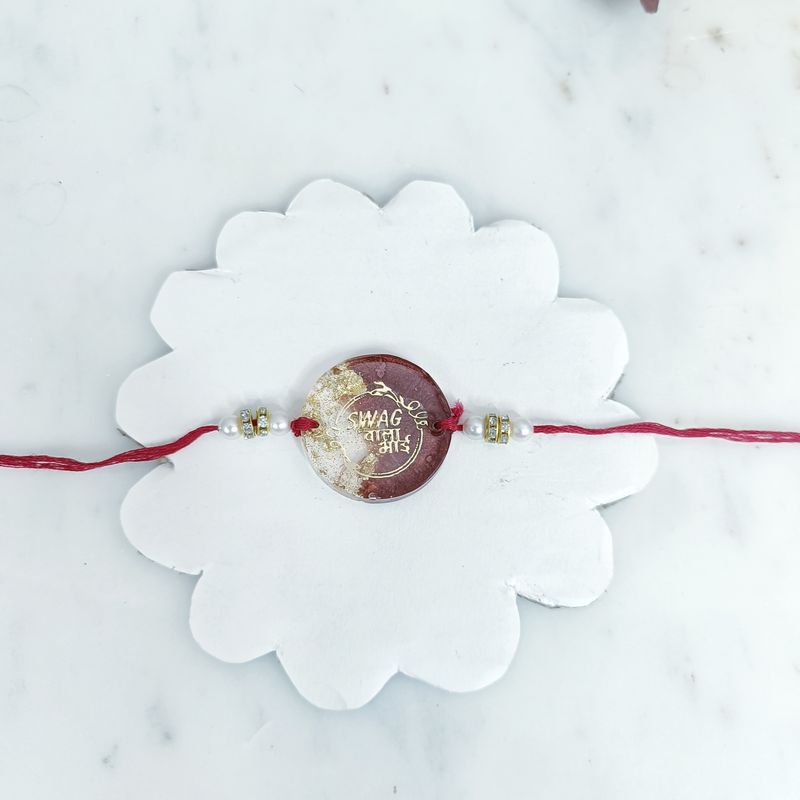 Celebrate Raksha Bandhan in style with our Resin Swag Wala Bhai Rakhi Set. Crafted from high-quality resin, each rakhi exudes uniqueness and charm, perfect for showing your brother how much he means to you.