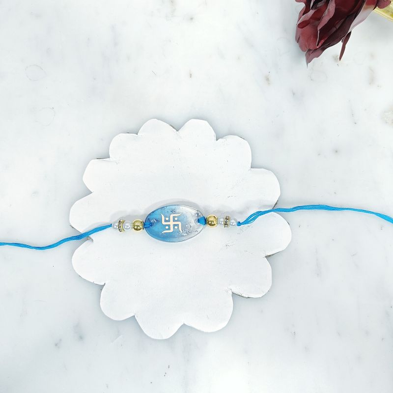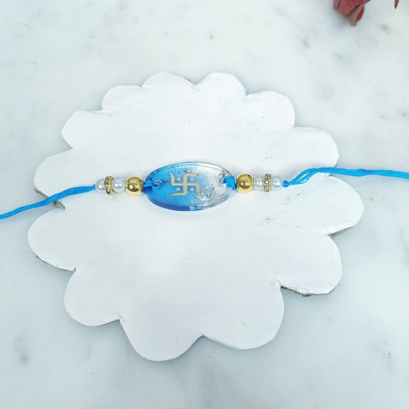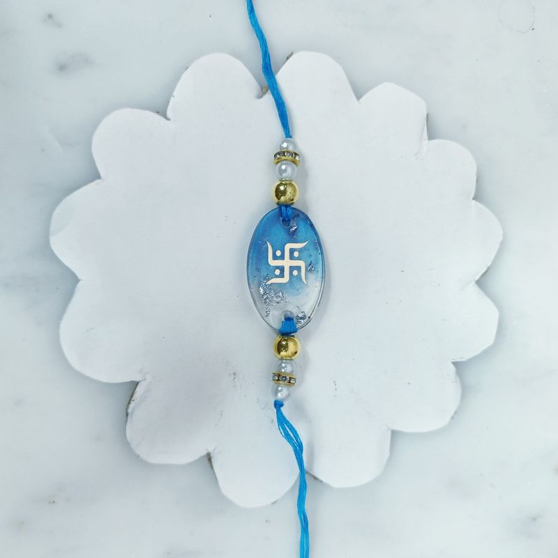 Discover the charm of our Resin Swastik Bliss Rakhi, meticulously crafted from resin for a unique touch. This rakhi blends traditional symbolism with contemporary craftsmanship, perfect for celebrating Raksha Bandhan with style and sentiment.