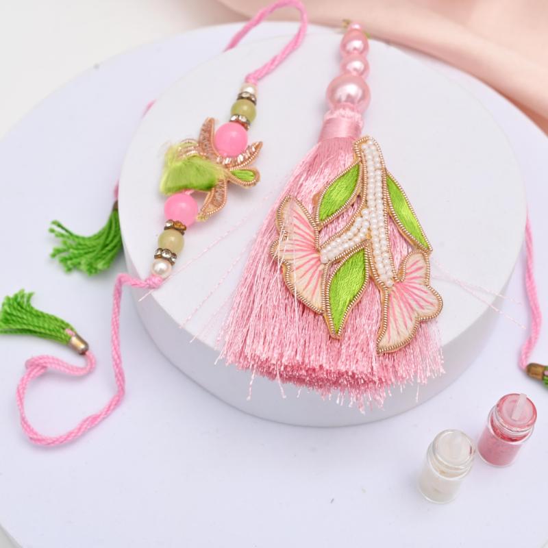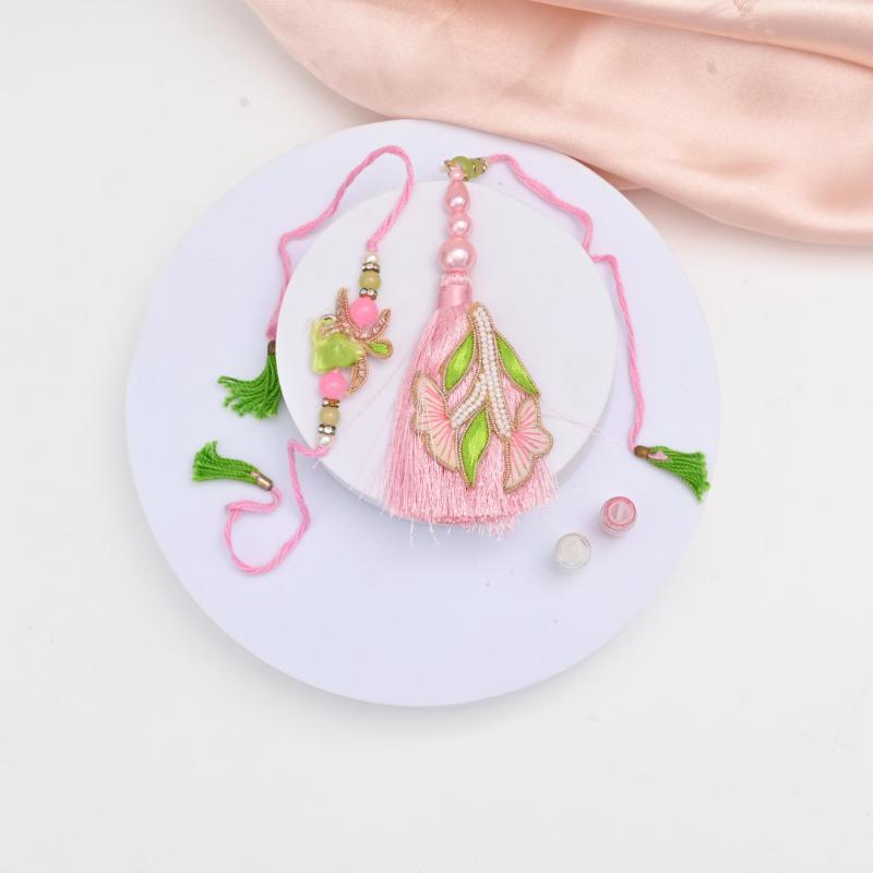 Celebrate the richness of Indian tradition with the Royal Zardosi Handcrafted Bhaiya Bhabhi Rakhi Set. Intricately designed using classic zardosi embroidery, this rakhi pair showcases regal patterns, silk threads, and traditional embellishments. The Bhaiya rakhi exudes strength and heritage, while the Bhabhi lumba adds a graceful, festive charm. Send this artisanal rakhi set to the Australia and honor your bond with elegance, culture, and timeless artistry.