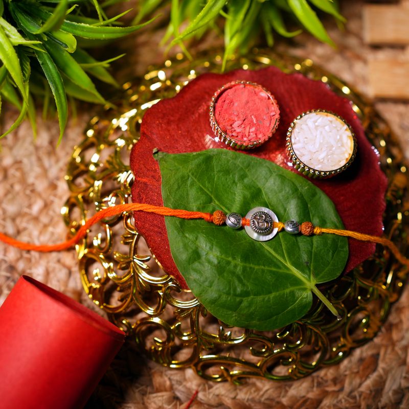 Embrace the divine with our Sacred Essence Rudraksha Divine Rakhi, a symbol of spiritual protection and purity. This intricately designed rakhi blends traditional Rudraksha beads with modern elegance, making it a perfect gift for your beloved brother.