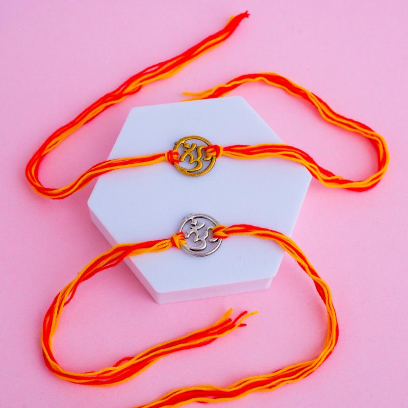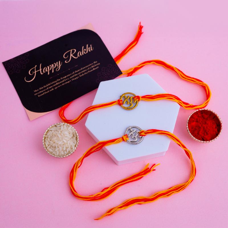 Celebrate the spirit of togetherness with our Sacred Om Rakhi Set of Harmony. This beautifully curated set includes intricately designed Om rakhis that radiate peace, balance, and divine protection. Perfect for brothers who cherish tradition, each rakhi features spiritual symbolism and vibrant threads that reflect purity and love. Whether for multiple brothers or bhaiya-bhabhi, this rakhi set makes your festive gesture feel sacred, complete, and deeply personal.