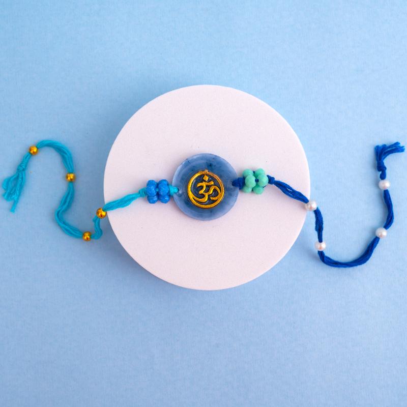 Celebrate Raksha Bandhan with a divine touch through our Sacred Om Resin Thread of Blessings. Featuring the holy "?" symbol intricately cast in glossy resin, this rakhi blends tradition with modern craftsmanship. The radiant centerpiece is tied with soft, vibrant threads to symbolize purity, strength, and spiritual protection. Perfect for brothers who value culture and connection, this rakhi is a prayer of love wrapped around the wrist.