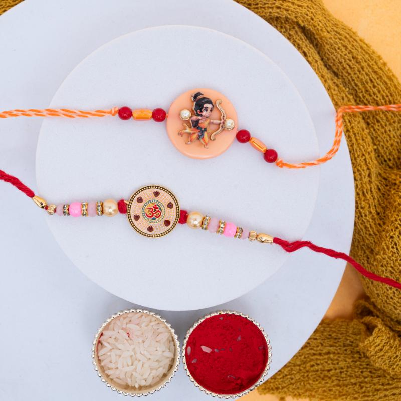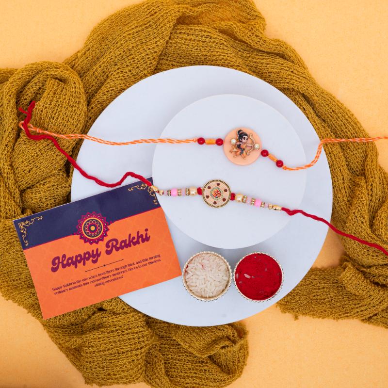 Celebrate Raksha Bandhan with a meaningful mix of tradition and fun! This combo includes a divine Shri Ram Kids Rakhi, a stylish Modern Om Rakhi, 250gm of classic Soan Papdi, and 3pcs of Ferrero Rocher. A delightful way to share blessings, joy, and sweetness with your brothers in the USA.
