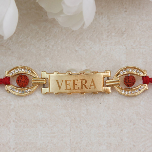 This Rakhi has a golden metal plate on which ‘Veera’ is printed, two Rudrakshas which are attached on both the ends of it and decorated with stones. Nothing can be more perfect than this for your lovely brother. Let’s tie this Rakhi on the wrist of your brother and enjoy his happiness. He would surely be so happy with this unique and striking Rakhi. Also, printed Veera would make him feel your heartfelt emotions. If you are not living with your brother, then you can send it to your brother with the help of us to any corner of the world. Wishing you a very happy Raksha Bandhan to all!!
