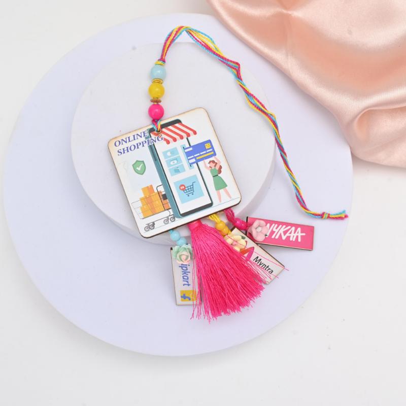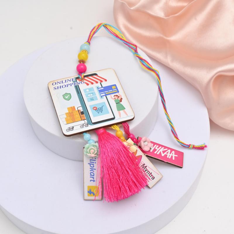 Adorn your fashion-forward Bhabhi this Raksha Bandhan with our Stylish Shopper Lumba Rakhi! This elegant Lumba features a charming shopper bag motif, intricately crafted to represent her love for style and all things chic. It’s a modern twist on traditional design, made to be both eye-catching and meaningful. This unique Lumba is a perfect way to celebrate her contemporary spirit and add a touch of personal flair to her festive attire.