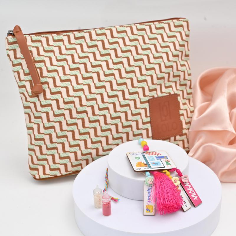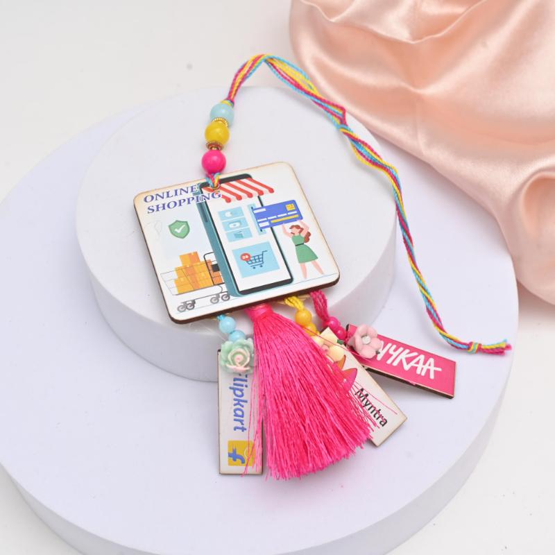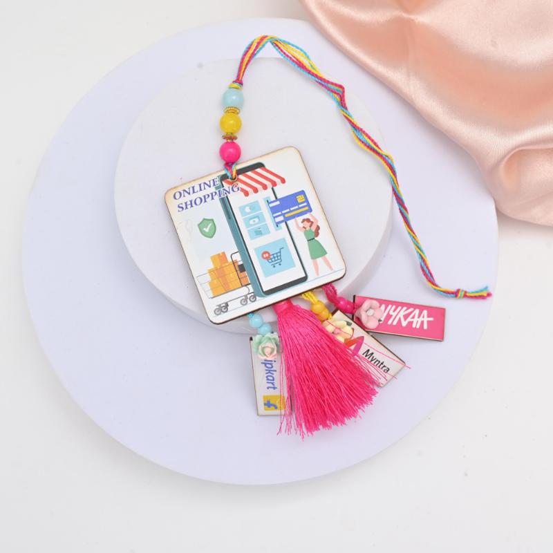 Adorn your fashion-forward Bhabhi this Raksha Bandhan with our Stylish Shopper & Travel-Ready Lumba Rakhi! This elegant Lumba features a charming shopper bag motif, intricately crafted to represent her love for style and all things chic. It’s a modern twist on traditional design, made to be both eye-catching and meaningful. Adding a thoughtful and practical touch, this set comes with a versatile travel pouch. It''s perfect for your Bhabhi to organize her essentials on the go, making her journeys smoother and more stylish. This unique Lumba Rakhi set is a perfect blend of modern flair and everyday utility, ensuring she feels truly cherished this Raksha Bandhan.