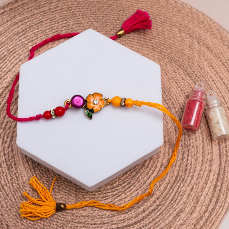 Brighten your brother’s wrist and heart with the Sunlit Blossom Yellow Floral Rakhi. Inspired by the beauty of nature, this rakhi features delicate floral motifs in cheerful yellow tones, symbolizing joy, positivity, and warmth. Perfect for brothers who love vibrant and thoughtful designs, this rakhi brings a refreshing twist to traditional Raksha Bandhan celebrations.