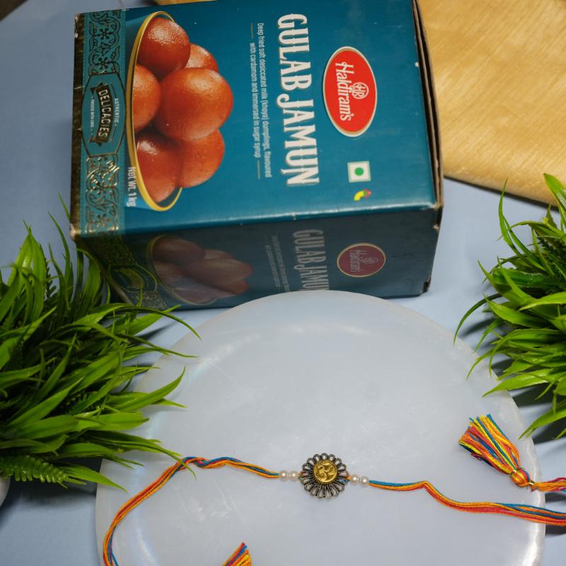 Illuminate your Raksha Bandhan celebration with this radiant Surya Golden Rakhi with Gulab Jamun 1kg combo. Featuring a striking rakhi inspired by the Sun God, this piece symbolizes vitality, protection, and eternal love. Crafted in golden tones, it brings divine energy to the sacred sibling bond. Paired with 1kg of luscious Gulab Jamun, this combo blends blessings and indulgence—perfect for gifting your brother in India or sending your heartfelt wishes to the Australia.