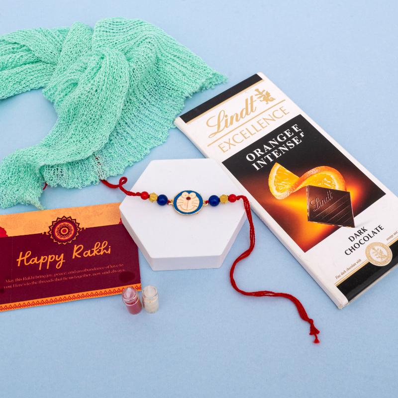 Surprise your sibling this Raksha Bandhan with a playful Doraemon Rakhi paired with a smooth and rich 100g Lindt chocolate bar. A delightful combination of fun and indulgence, perfect for making your bond even sweeter.