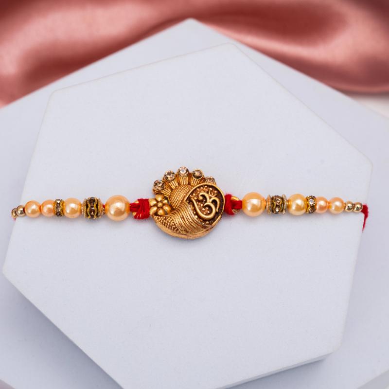 Rooted in tradition and crafted with modern elegance, the Divine Aura Om Metal Rakhi is a sacred symbol of protection and peace. Featuring a finely detailed Om symbol in durable metal, this rakhi is perfect for brothers who appreciate spiritual meaning and strong design. A thoughtful blend of faith and style, it’s more than a thread—it’s a blessing he can wear with pride.