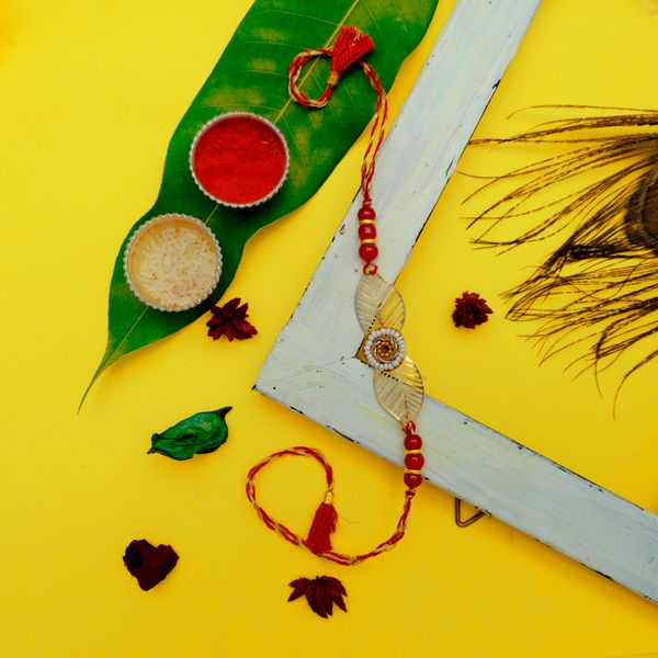 Celebrate the bond of love and protection with our Verdant Leaf Rakhi. This exquisitely crafted rakhi features intricate leaf motifs, symbolizing growth and strength. Perfect for expressing your heartfelt emotions on Raksha Bandhan.