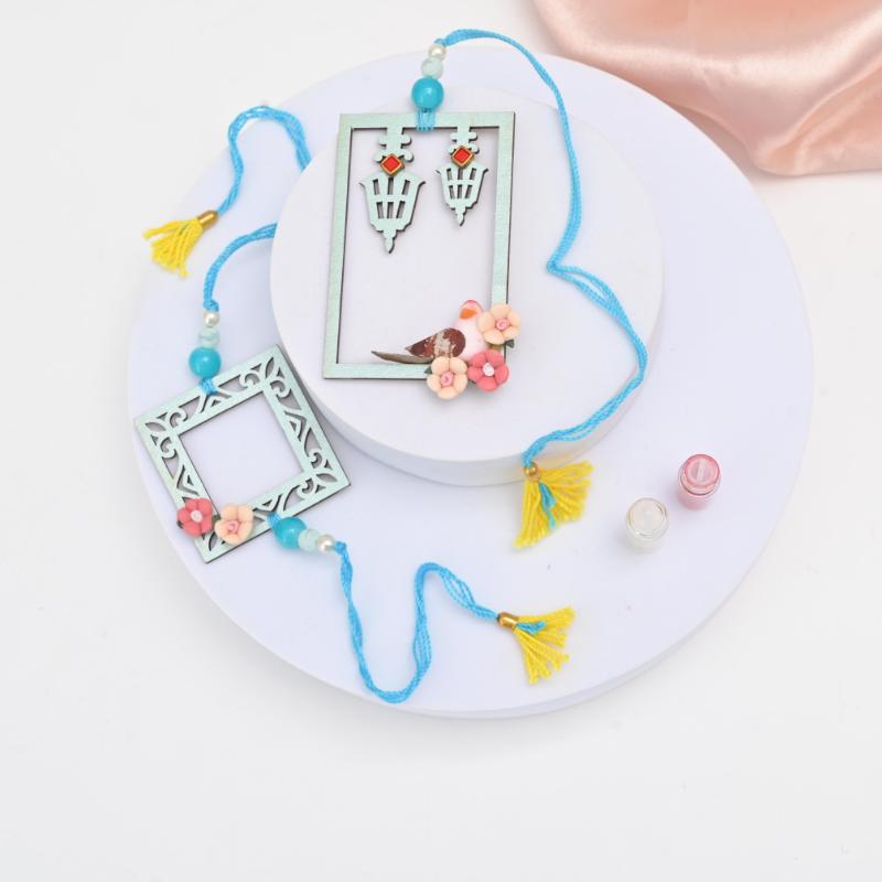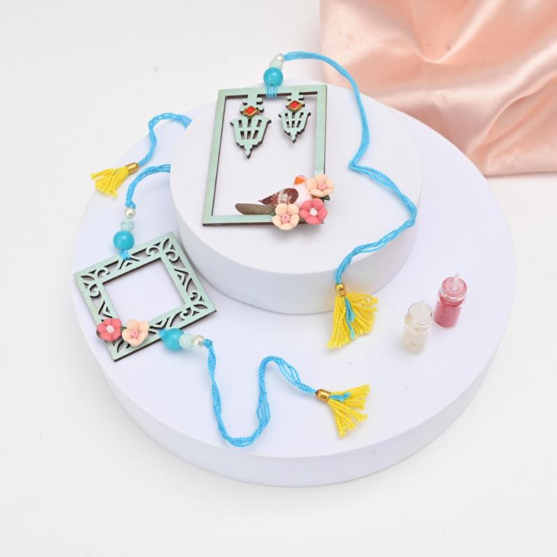Celebrate the joyful flight of your bond with our Whimsical Birds & Blooms Bhaiya Bhabhi Rakhi Set! This utterly charming pair features delightful birds perched amidst blooming flowers, intricately crafted to bring a touch of nature''s beauty and cheer to their wrists. The cute and vibrant design on the Bhaiya Rakhi is perfectly complemented by the elegant matching Lumba for Bhabhi, symbolizing growth, happiness, and the sweet harmony of their relationship. It''s a truly enchanting way to express your love and appreciation this Raksha Bandhan.
